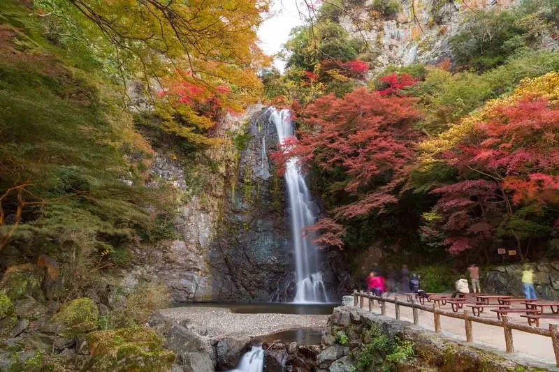 숲속 길 따라 폭포까지 약 40분 트레킹 코스로, 단풍잎 튀김(모미지 텐푸라)로 유명해요.