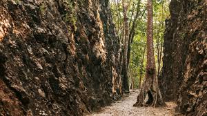 전쟁포로들이 직접 바위를 깎아 만든 철도 터널의 흔적입니다.