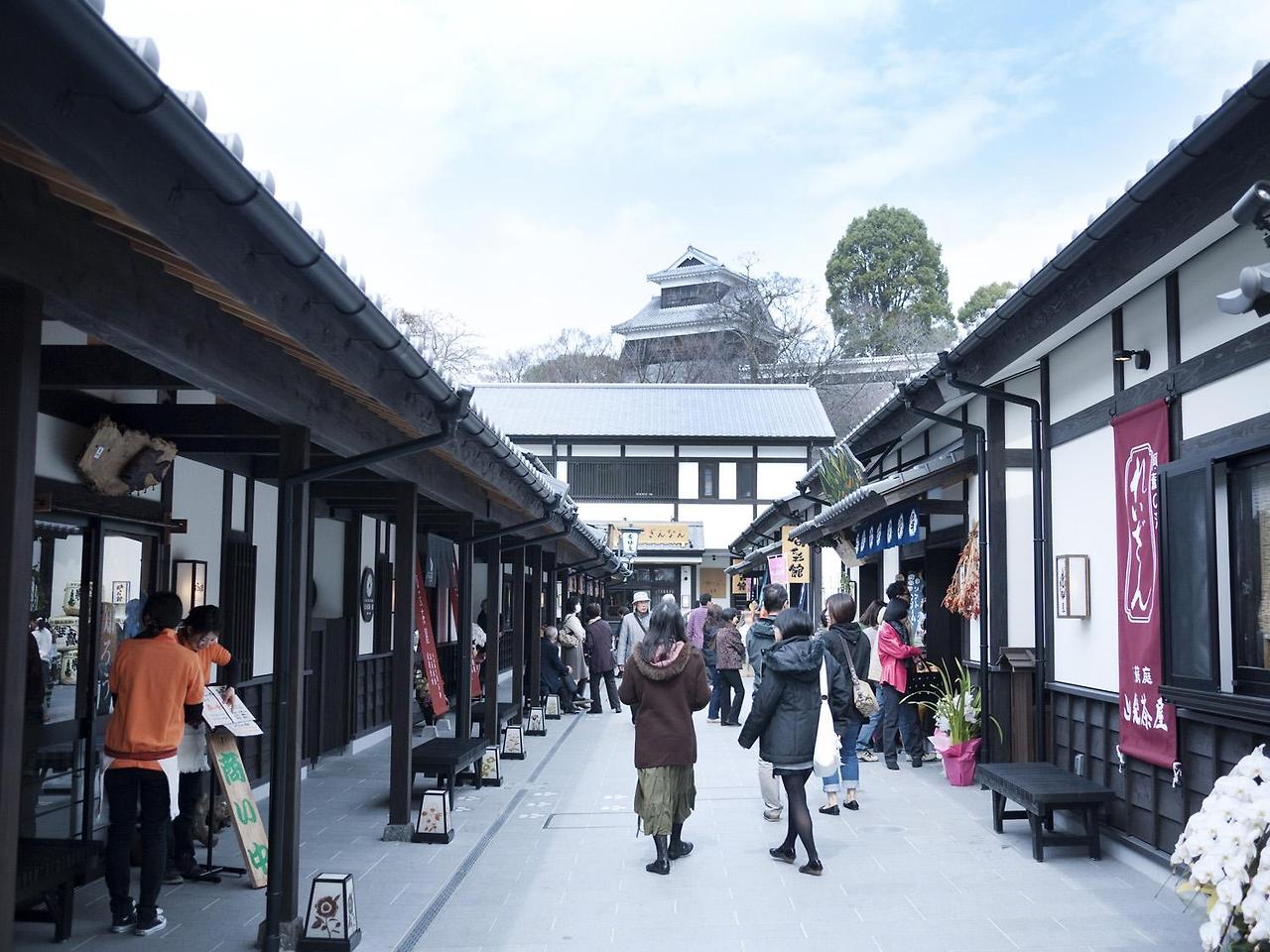 구마모토의 전통과 현대가 만나는 거리.