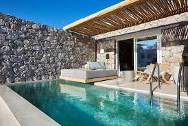 • 특징: 풀빌라 형태의 럭셔리 부티크 호텔. 각 객실에 프라이빗 풀과 에게해를 내려다보는 테라스가 있음.