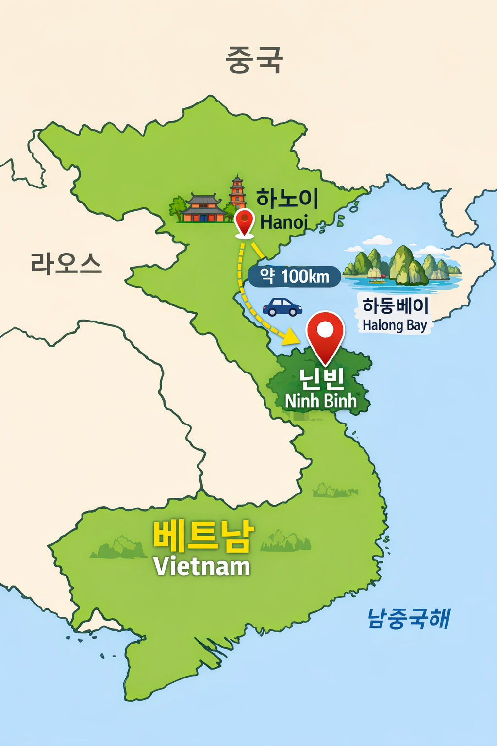 하노이에서 약 100km 정도 떨어져 있습니다.