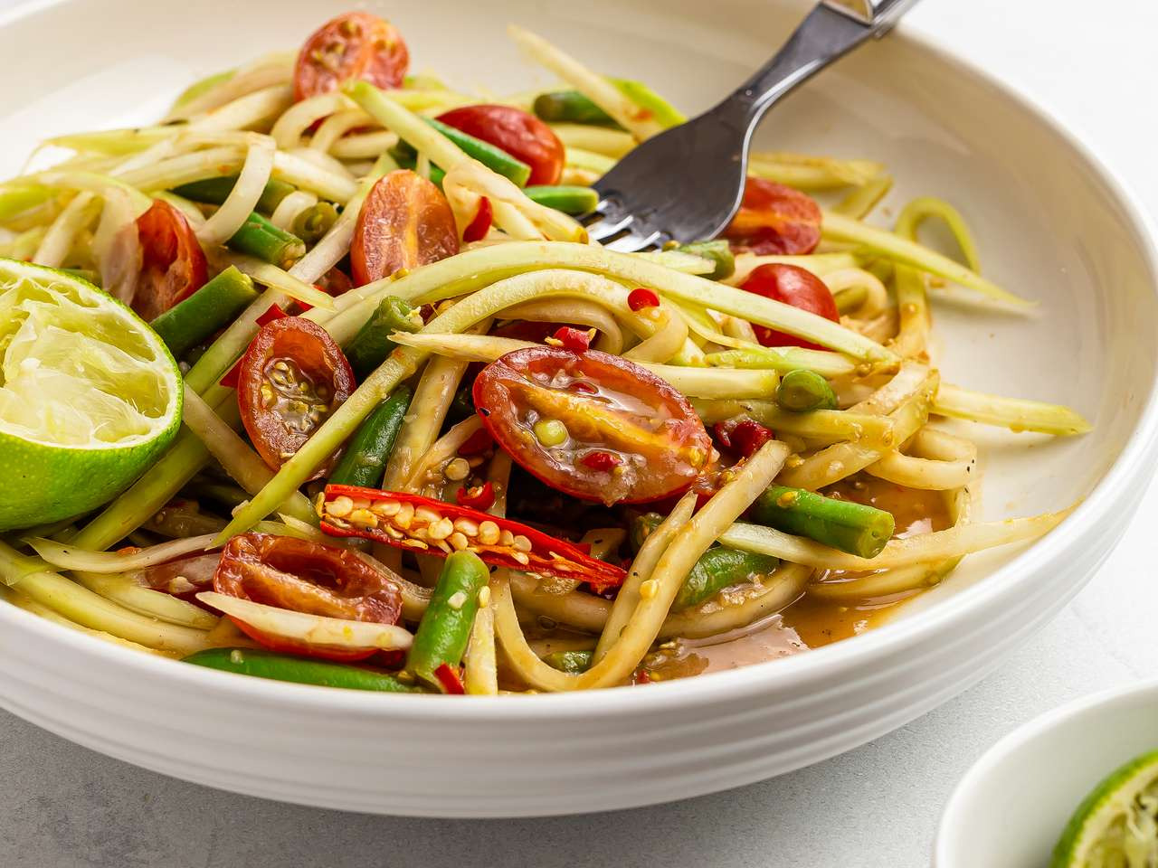 라오스식 파파야 샐러드. 매운맛 조절 가능.