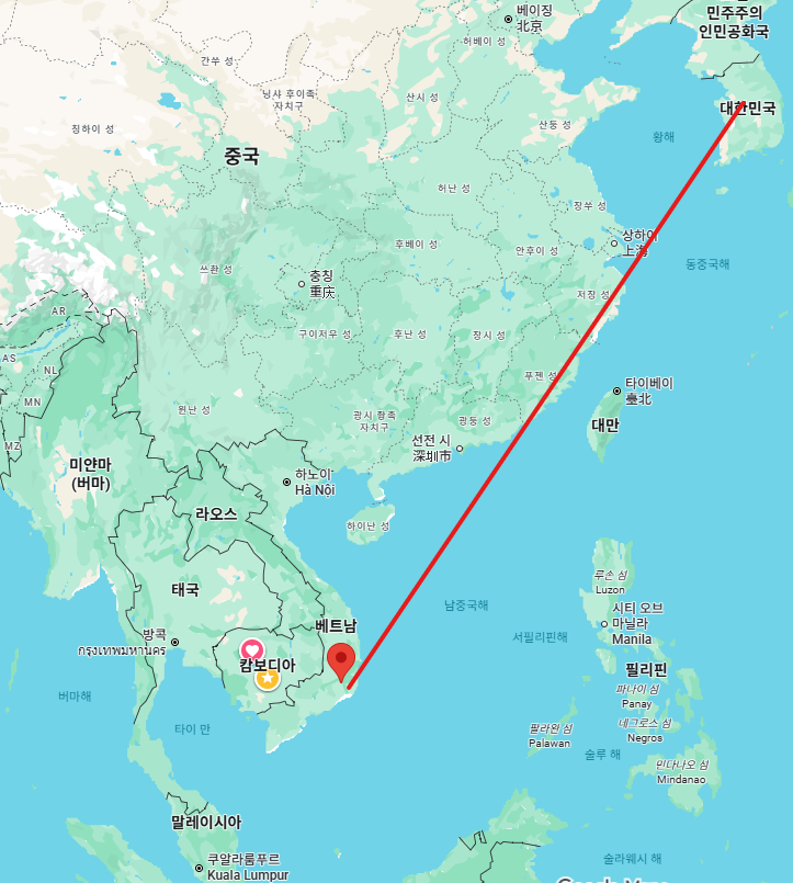인천(서울) → 달랏 : 약 3,400km 항공 직선거리