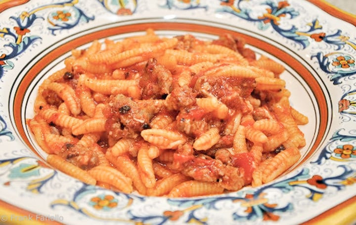 돼지고기 소시지, 토마토 소스, 향신료(펜넬)와 함께 조리해 진한 풍미의 지역 대표 파스타다.