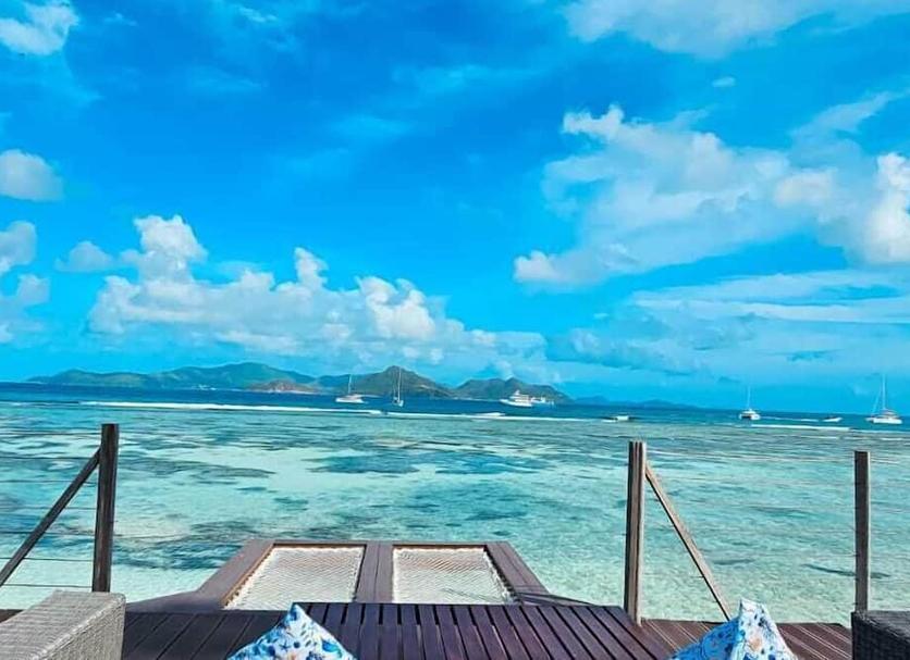프랄린섬의 최고급 리조트로, 객실 발코니에서 바로 안셀라지오 해변이 보인다.