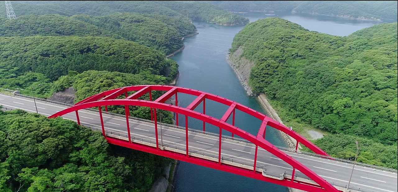 바다를 가르는 듯한 이 다리는 양쪽으로 짙은 숲이 둘러싸여