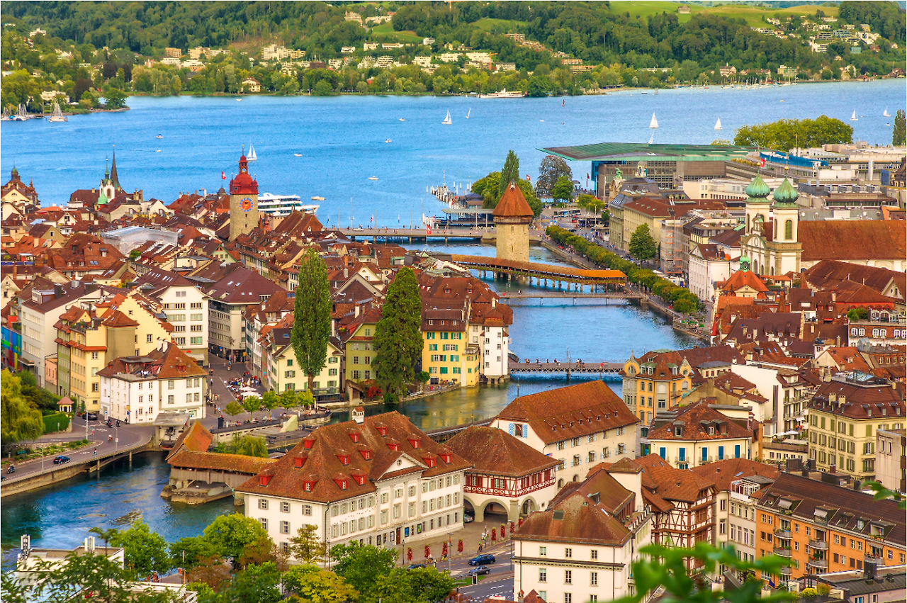 멀리 보이는 카펠교가 보이는 중세도시 그대로 루체른.(출처:인터파크)