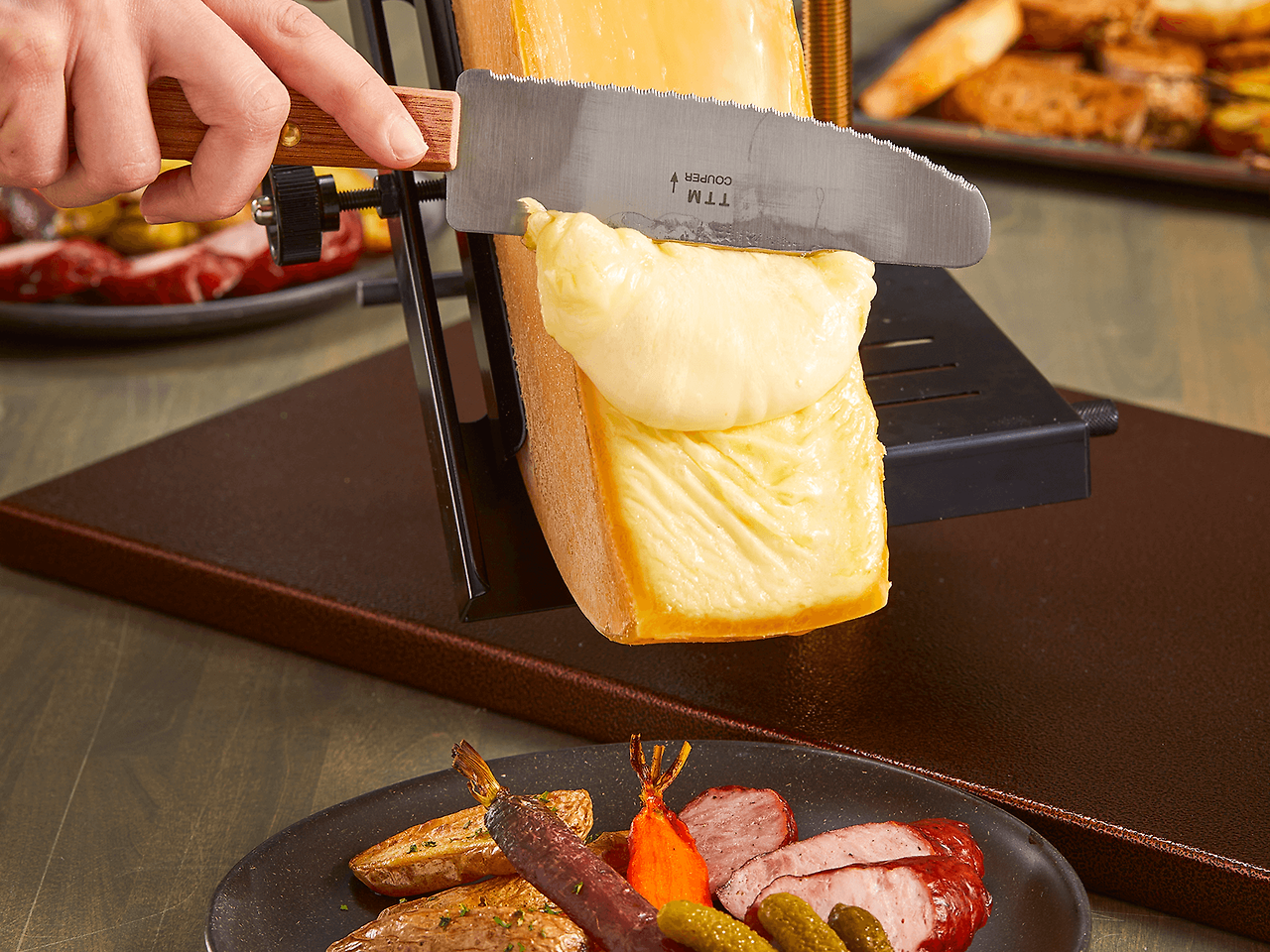 큰 치즈 덩어리를 녹여 감자·햄·야채 위에 긁어 올리는 요리.