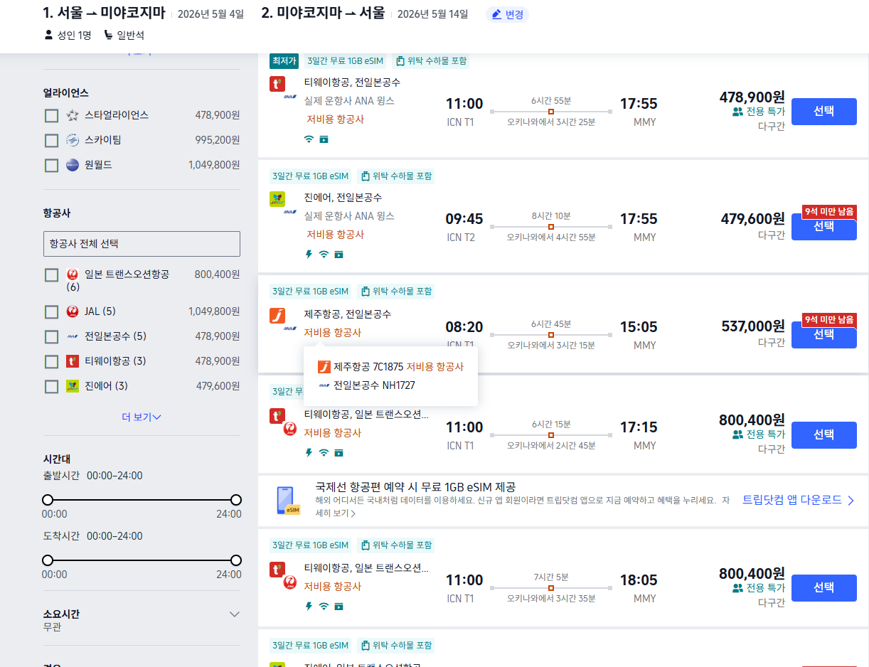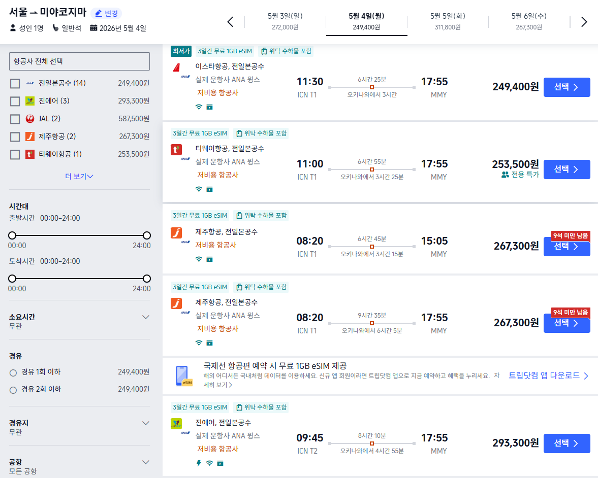 4. 미야코지마 항공권 싸게 사는 방법