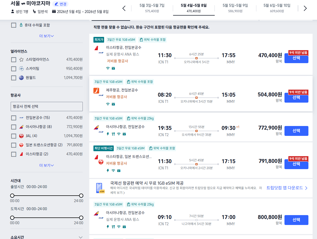 미야코지마 항공권을 검색할 때