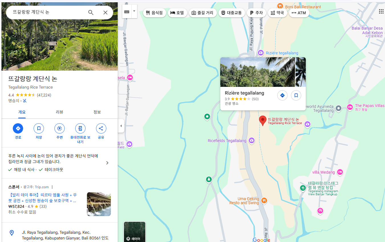 - 우붓 근처의 테갈랄랑 라이스 테라스는 발리의 상징적인 풍경 중 하나입니다. 이곳에서는 경이로운 자연 경관을 감상하면서 트레킹을 즐길 수 있습니다. 라이스 테라스는 계단식으로 조성되어 있어서, 사진 찍기에도 이상적입니다.