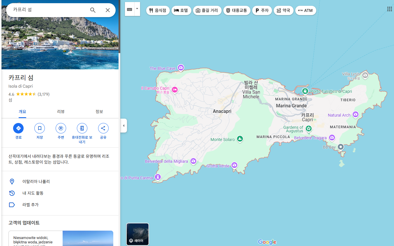 이 세 곳 모두 카프리의 자연 아름다움과 매력을 잘 보여주는