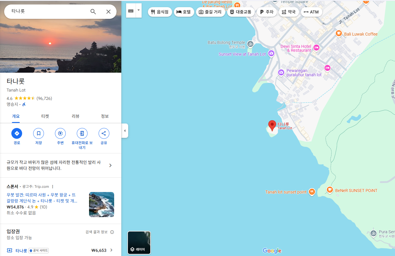 - 타나롯 사원에서 일몰 감상
